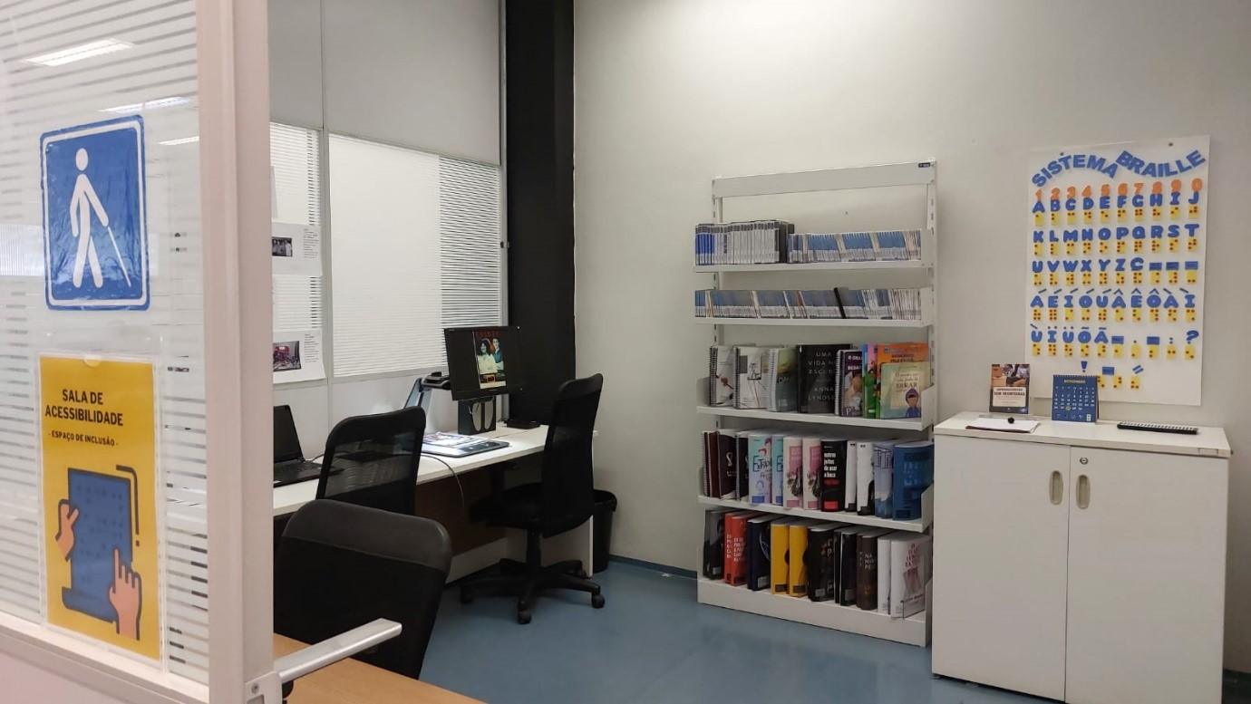 A biblioteca conta também com Espaço de Acessibilidade que atende pessoascegas e com baixa visão, através de um espaço inclusivo, que realiza a integração entre a palavra escrita e/ou falada (em meio físico ou digital) e o seu usuário.
