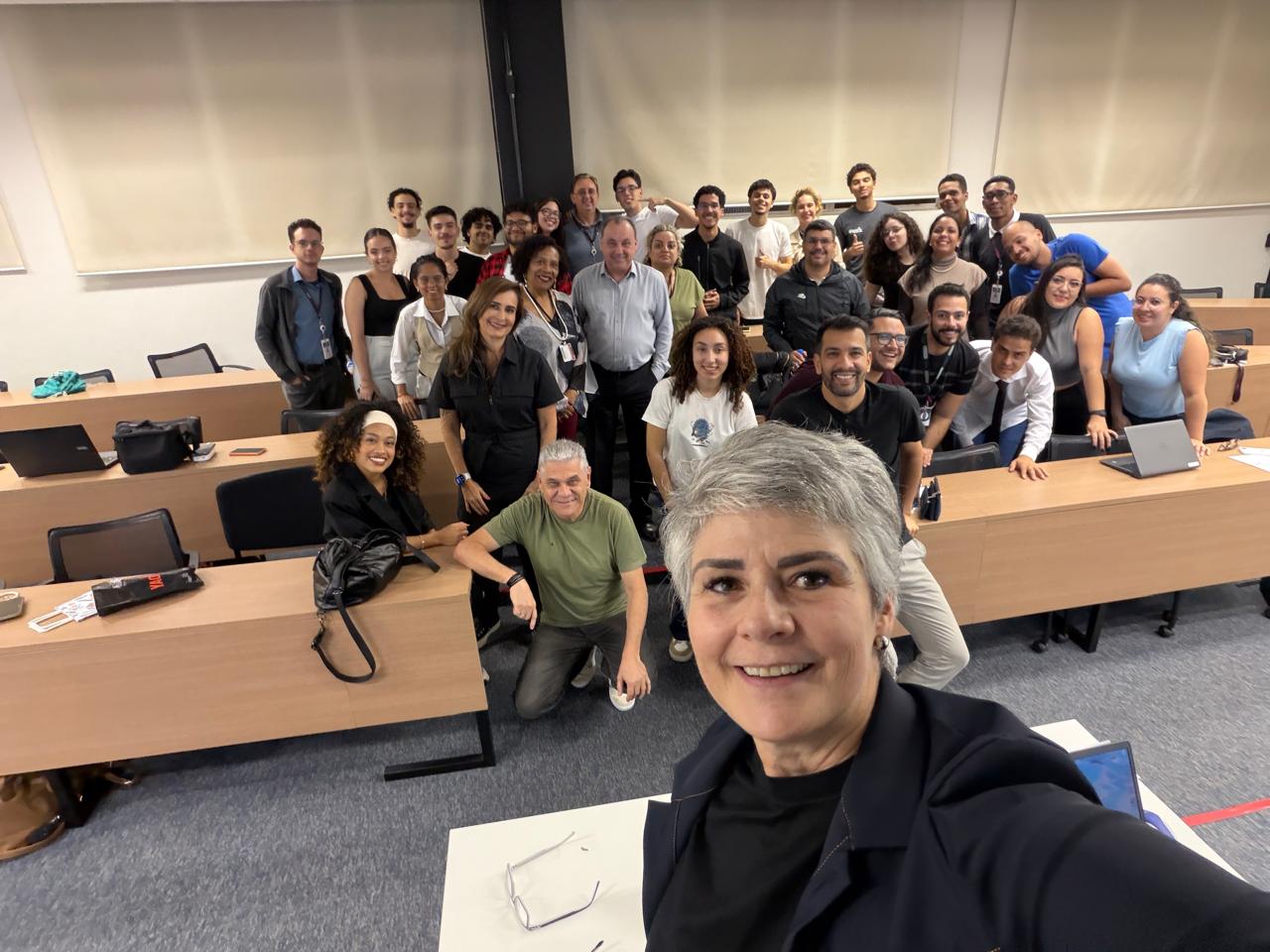 A primeira experiência dessa parceria aconteceu com total sucesso na quinta-feira, 27 de novembro de 2025, durante as apresentações finais dos projetos dos alunos do 1º semestre do curso de Gestão de Negócios e Inovação (GNI).