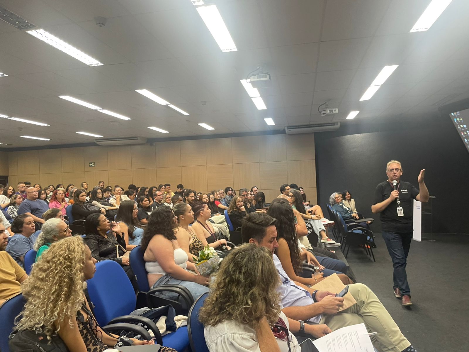 As fotos a seguir registram alguns momentos do evento, desde a abertura no auditório até as apresentações dos trabalhos.